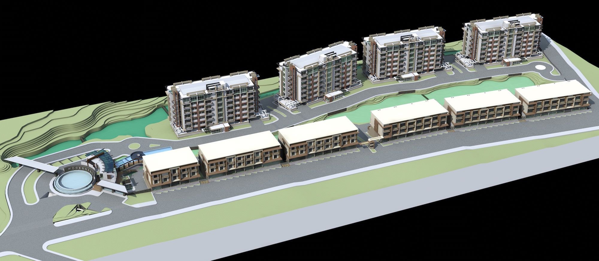 The design concept derived from two important constraints of the site, a very lovely natural fountain and contour site. To solve the problem. Locate the lake in the middle of the site, while locate all buildings .